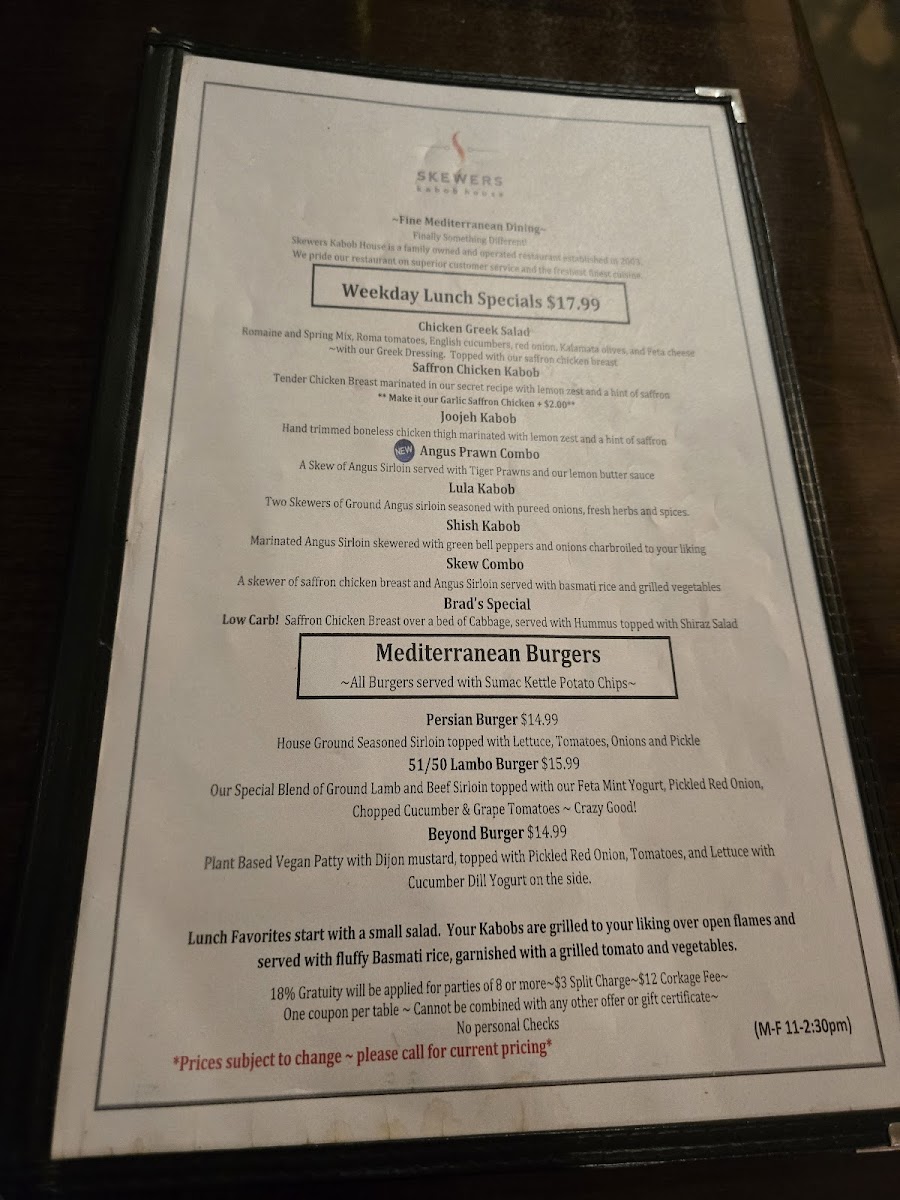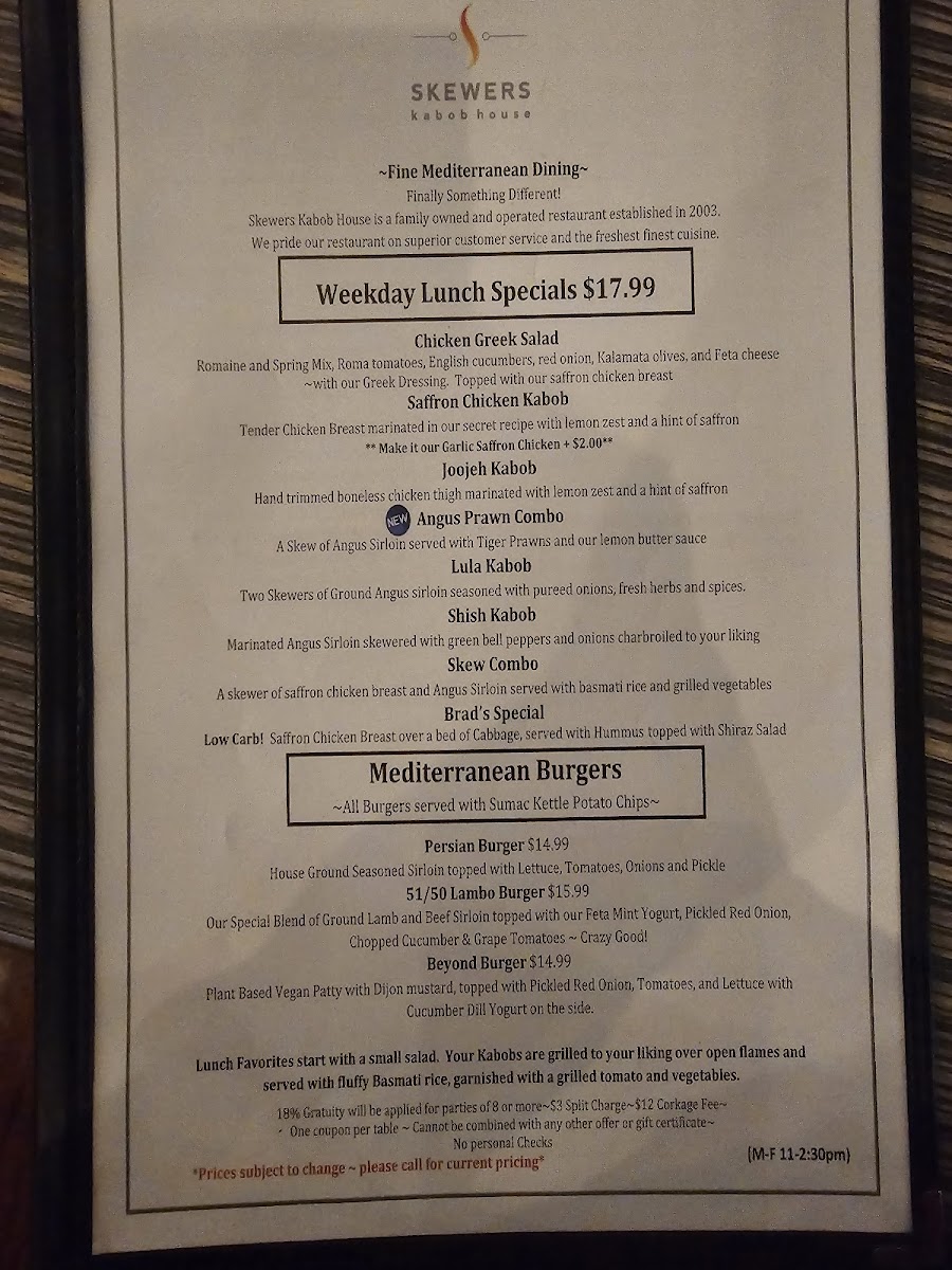 Welcome to Skewers Kabob House, a delightful Mediterranean restaurant nestled in the heart of Modesto, California. Offering a flavorful journey through Middle Eastern cuisine, Skewers Kabob House is a must-visit for anyone craving the rich flavors and aromatic spices typical of Persian dishes.